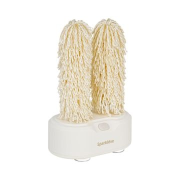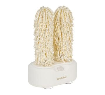 A spinning glass polisher quickly removes water spots and gives wine glasses a cleaner finish in seconds.